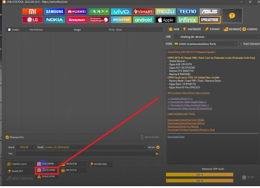 - Select the downloaded Realme C53 RMX3762 Unlock File into the tool