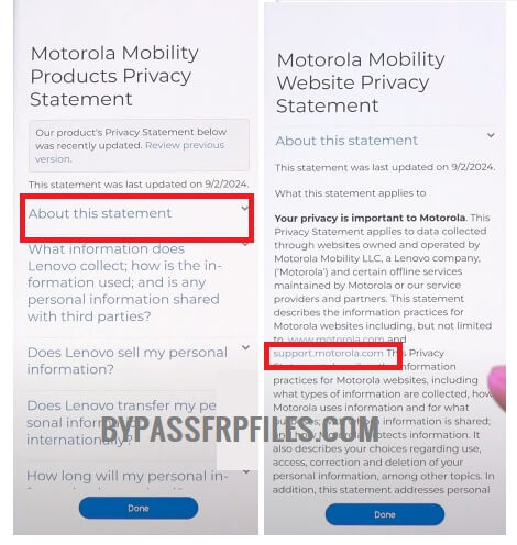 -Tap on “Motorola Privacy Policy” option.