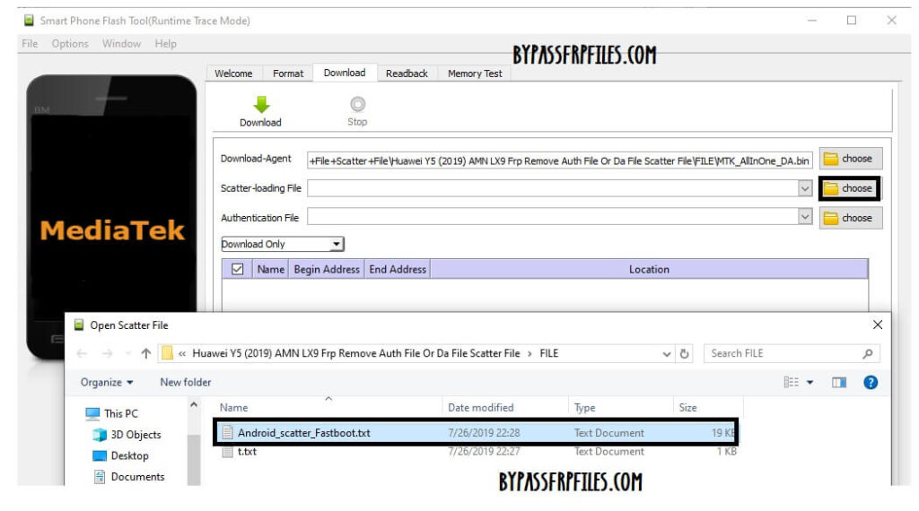 - Click Choose from “Download-Agent” tab and Select the DA file.