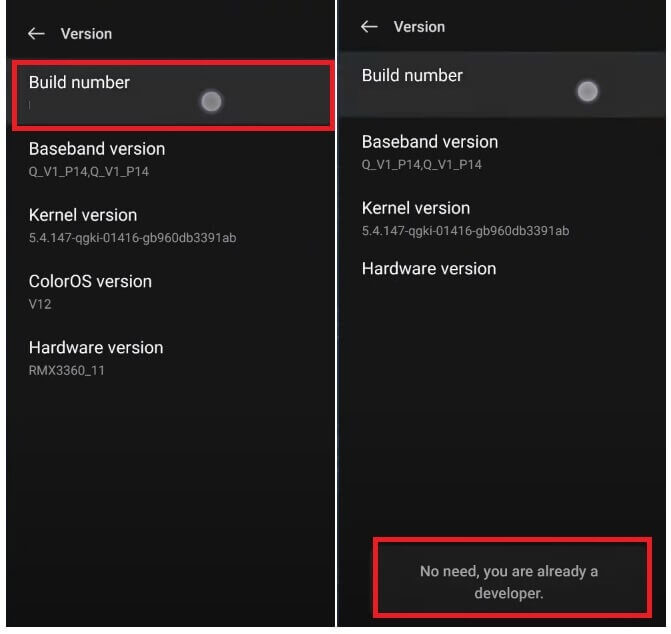 - Tap on Build Number simultaneously until Developer Mode turns On.