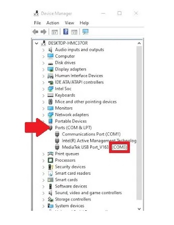 - Open Device Manager > Check the COMPORT Number.